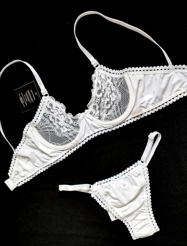 Conjunto de Lycra y Encaje, contiene aro en taza y tiras regulables. Colaless regulable de Lycra.