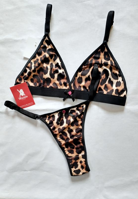 Conjunto triangulito de microfibra estampada con colaless regulable tiro alto.